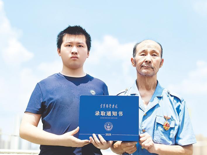 7月21日,一封来自中国人民解放军空军预警学院的录取通知书,抵达武汉学子张序道的家中。天空蓝的信封,承载着滚烫的期许。得知被该校雷达工程专业录取,他第一时间拉着爷爷张厚忠合影。