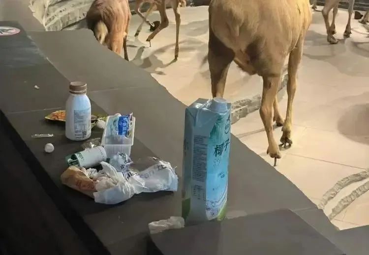 此外,另一博主在社交平台发文反映,其在几日前参观上海自然博物馆时,看到一些食品的外包装或喝空了的饮料瓶,被随意丢弃在了标本展池周围;一些糖皮、纸屑甚至掉落至展池内,出现在了标本附近。