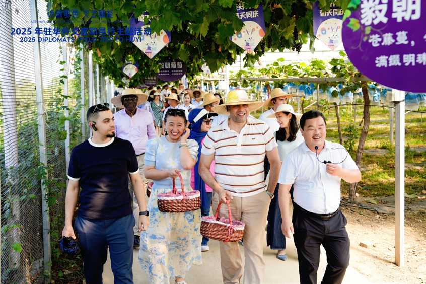 “若使文园知此味,露华应不乞金盘。”当来自20个国家的驻华外交官在毅朝现代农业园区内品尝到《葡萄》诗中的“甘香冰玉”,一场别开生面的国际对话正在葡萄藤下展开。