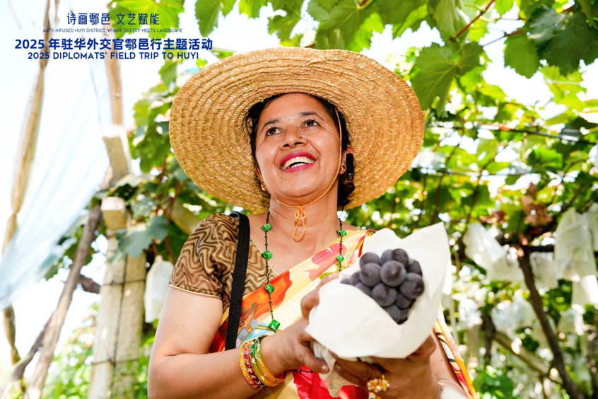 尼泊尔联邦民主共和国驻华公使帕尔巴蒂·阿里亚尔体验葡萄采摘