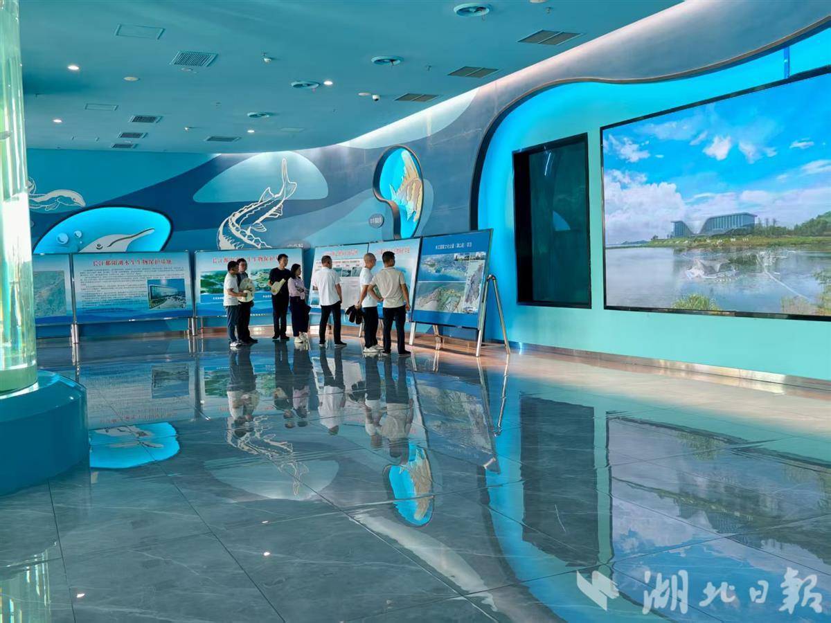 天鹅洲故道“长江江豚苑”内有世界小型鲸类迁地保护示范基地科教中心,将江豚保护与科普文旅有机结合。