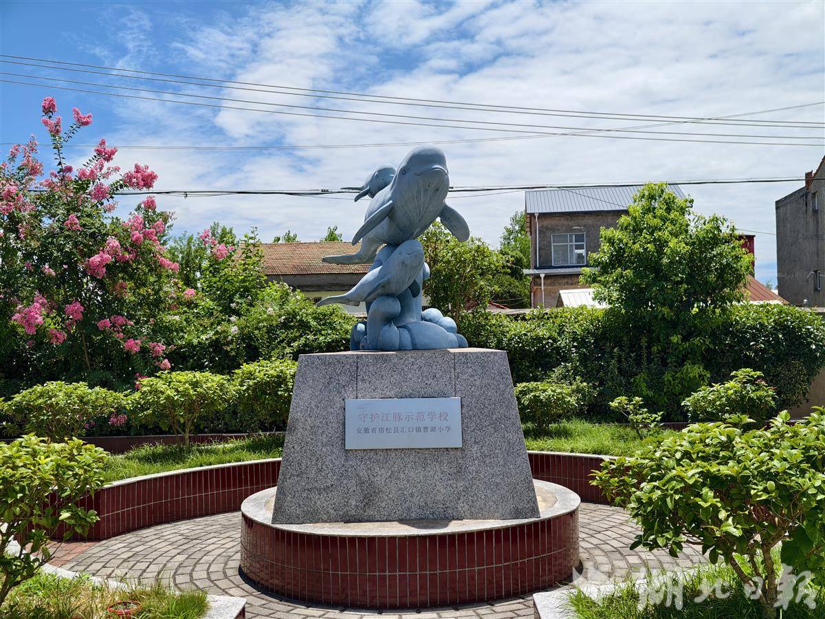 曹湖小学的江豚雕塑(湖北日报全媒记者 汪子轶 摄)