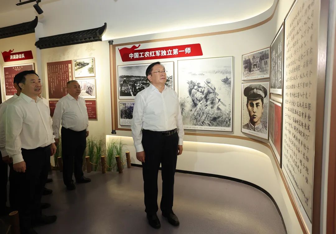 位于洪湖市瞿家湾的湘鄂西革命根据地旧址,是红二方面军的重要发源地和洪湖赤卫队的故乡。王忠林来到瞿家湾,参观中共湘鄂西省委会旧址、湘鄂西军事委员会旧址、洪湖赤卫队历史文化展,与大家共同追忆革命先辈的峥嵘岁月。王忠林指出,洪湖红色文化资源丰富,《洪湖赤卫队》脍炙人口、历久弥新。要坚持高标准制定环洪湖旅游规划,把红色文化旅游摆在更加突出的位置,不断提升红色文化资源保护利用水平。要在构建完善旅游产业链条上下功夫,统筹布局基础设施和配套服务功能,不断丰富文化旅游产品供给。