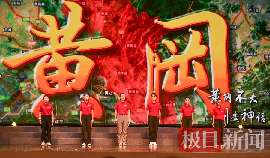 “建成支点”篇章,宣讲员则通过数据展示黄冈发展成就,2024年GDP突破3000亿元,2025年上半年多项经济指标位居全省前列。北京大学“知行计划”暑期实践见习团队带来的情景诗朗诵《黄冈不大,创造神话》,深情回顾了这片红色热土从古至今孕育的杰出人物与辉煌成就。
