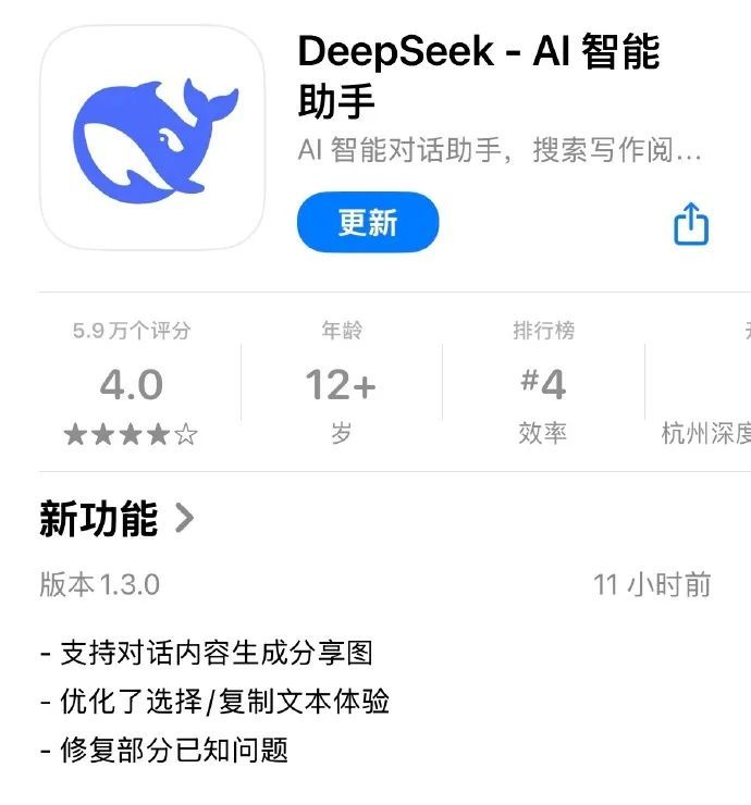 8月14日,DeepSeek App更新,支持对话内容生成分享图。