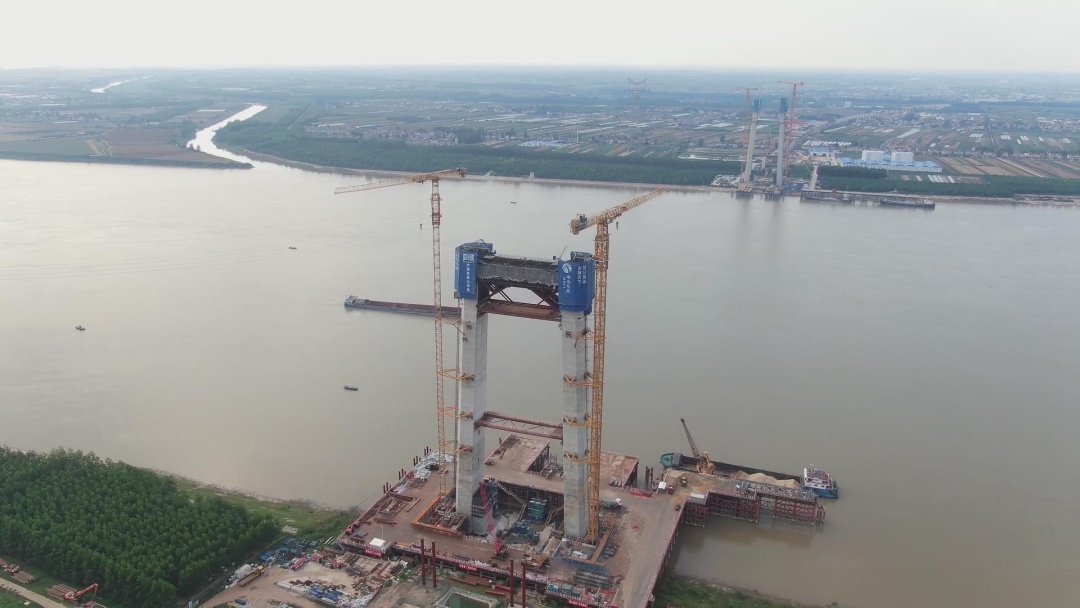 “目前我们正在进行4#主塔第24节塔柱以及中横梁第二层钢筋施工。” 中铁建大桥局李埠长江公铁大桥项目技术质量部副部长曲臣相介绍,施工人员采取“白+黑”两班倒模式,投入大型设备十几台,确保现场施工正常推进,预计本月18号完成横梁及塔柱混凝土浇筑,横梁浇筑完成后标志着塔柱正式进入上塔柱施工。