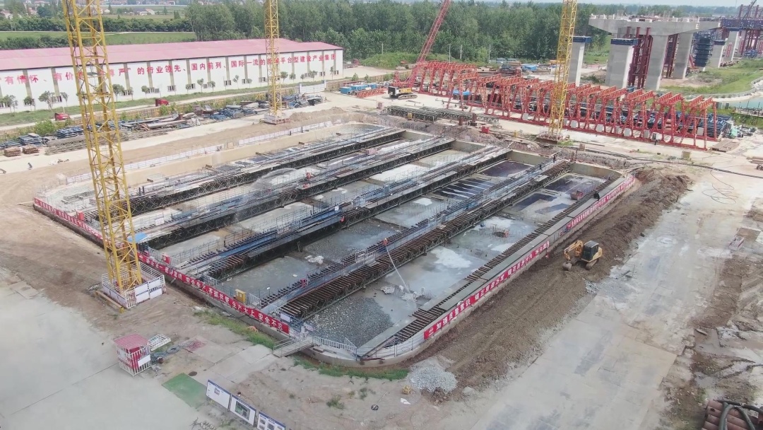 除了主塔,大桥南岸锚碇沉井也即将进入新的施工阶段。大桥南岸锚碇沉井属于国内超大型陆地沉井,相当于13个篮球场的大小,高22米,相当于7层楼,重量29.6万吨,相当地5艘辽宁舰的重量,沉井总体采用一次接高二次下沉施工工艺。在沉井施工现场,工人们手持高压水枪,正在对沉井填芯的混凝土面层进行养护。