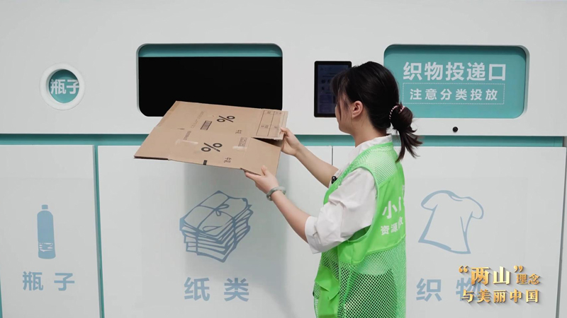 重庆市九龙坡区两网融合智慧服务中心现场解说员谢冰欣:我们的智能投放箱24小时都可以投放,纸类、织物、金属、塑料等废弃物投放进去后,智能回收箱会自动识别、称重,环保金也会即刻打到居民的账户里面。这些废弃物,我们会统一回收到处置场,通过人工和机器分拣后打碎,再流转到下个企业,比如塑料类就进入塑料厂。