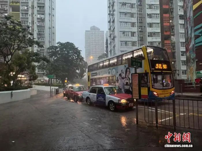 8月14日7时50分,香港天文台发出黑色暴雨警告信号。图为当天8时许,香港南区利東邨一带下起暴雨。中新网记者 李志华 摄