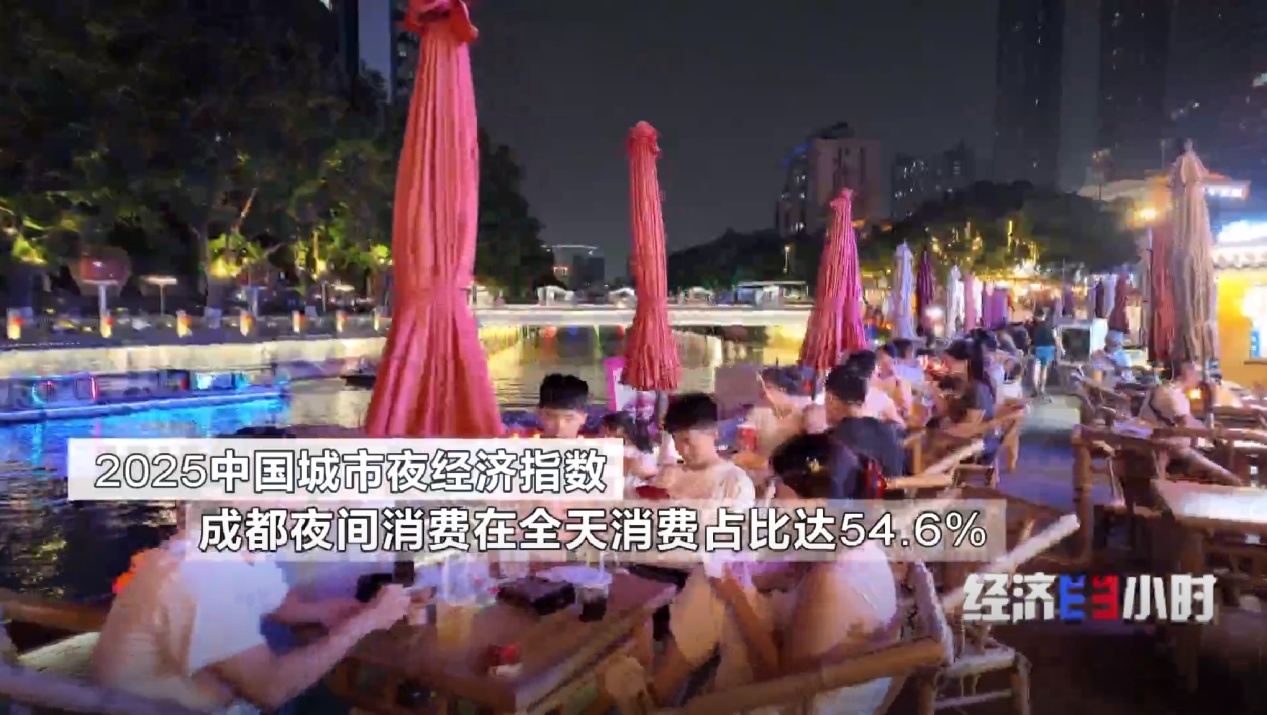 据2025中国城市夜经济指数,成都夜间消费在全天消费占比达54.6%,全国最高;夜间餐饮消费占全天比重为51.8%,位列全国第二。今年,四川将打造20个“不夜地标”和100个“夜经济集聚区”,并以“夜经济”为牵引,推动“夜游、夜购、夜展、夜娱”串珠成链,助力夜间经济发展。