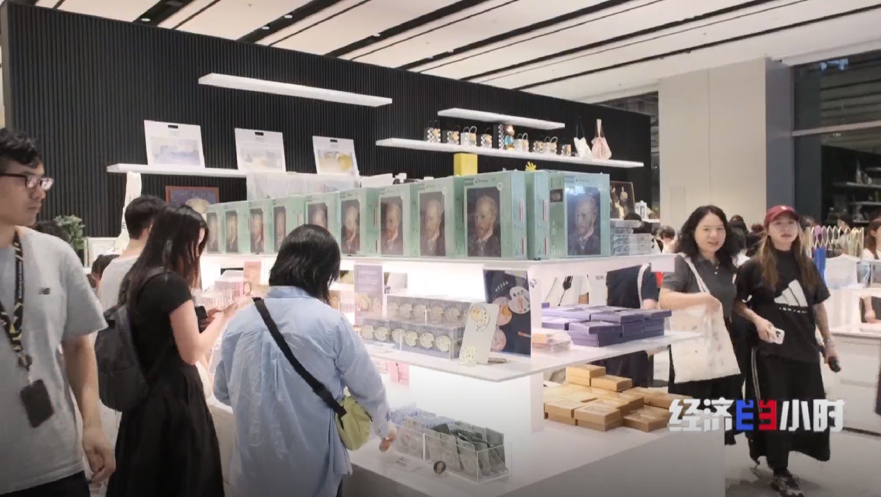 夜间文化消费的热度不止于展厅内,在浦东美术馆的文创商店里,同样挤满了前来选购的游客。美术馆负责人告诉记者,仅这次奥赛大展,他们就推出了200多款相关文创衍生品,有不少都成为销售爆款,像冰箱贴、书签、帆布包等周边的销售都十分紧俏。