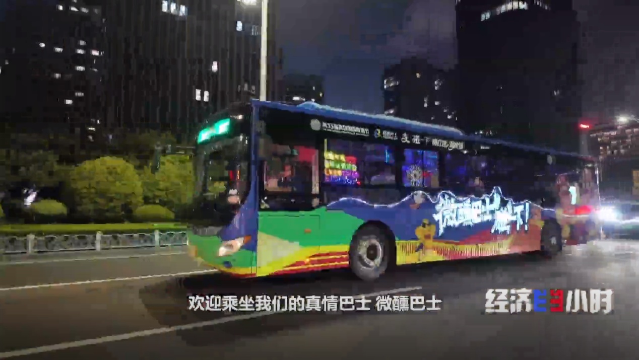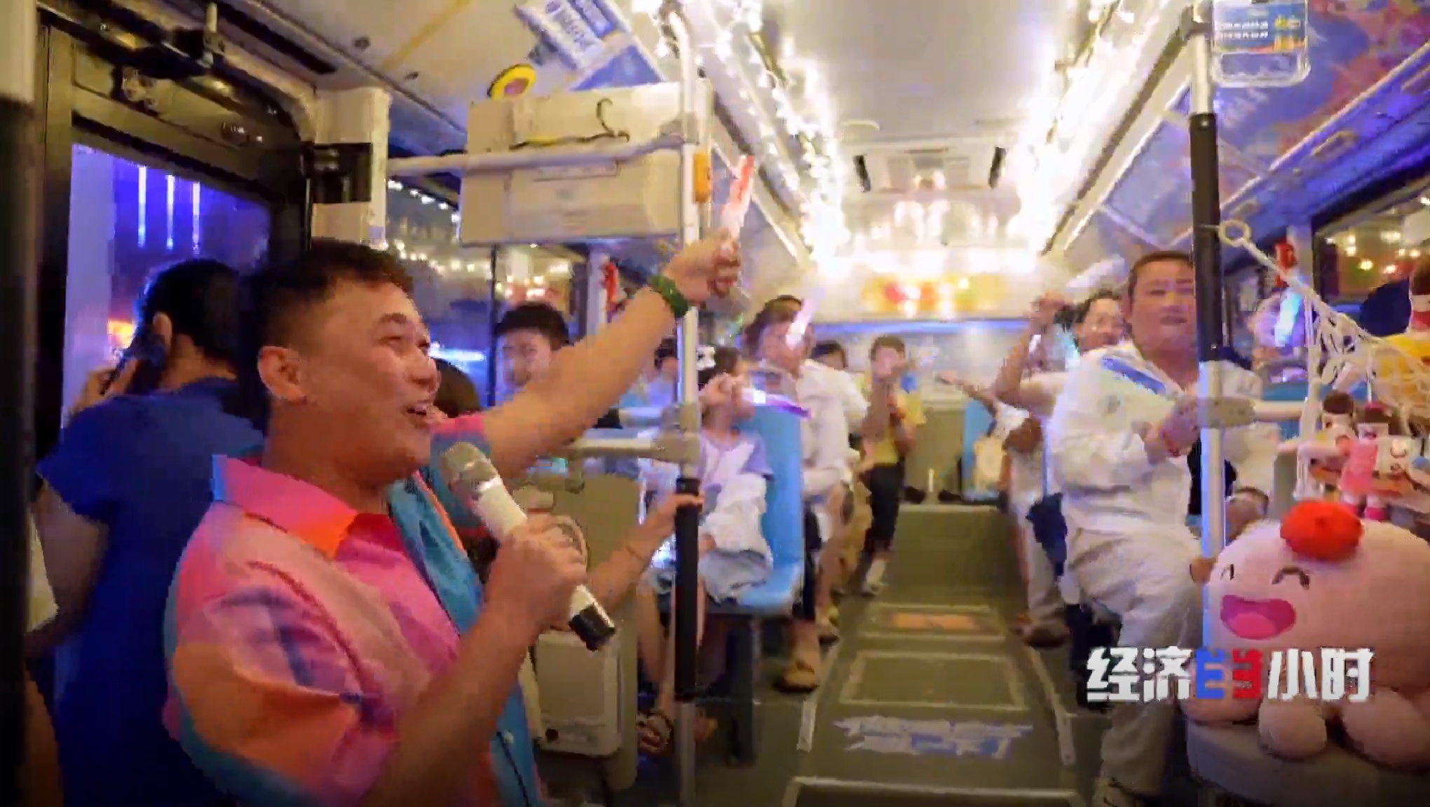在山东青岛,今年7月全新上线了一条公交专线。白天它是串联海神庙、山涧溪谷等网红打卡地的观光载体,夜幕降临,车厢就变成了“会移动的live house”,不仅有打酒设备,还有专业的歌手现场表演。