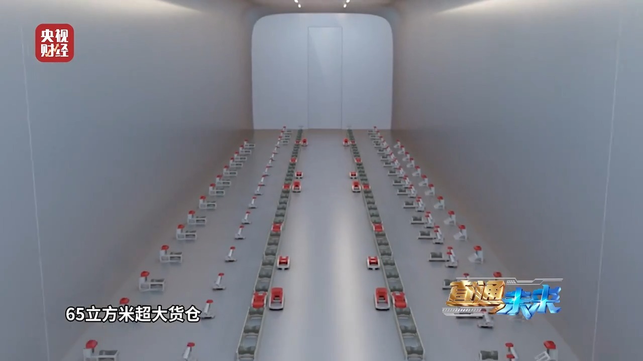 它的“腹腔”足有65立方米,足足可容纳约3辆小汽车,相比传统货运飞机效率成倍提升。