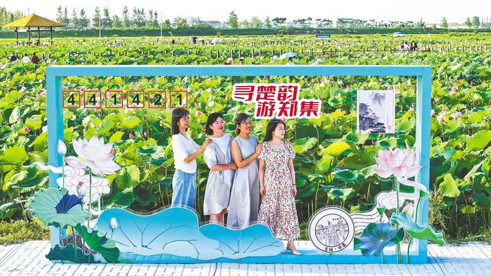 游客在宜城市魏岗村游玩莲藕产业园。 (湖北日报通讯员 郑新涛 摄)