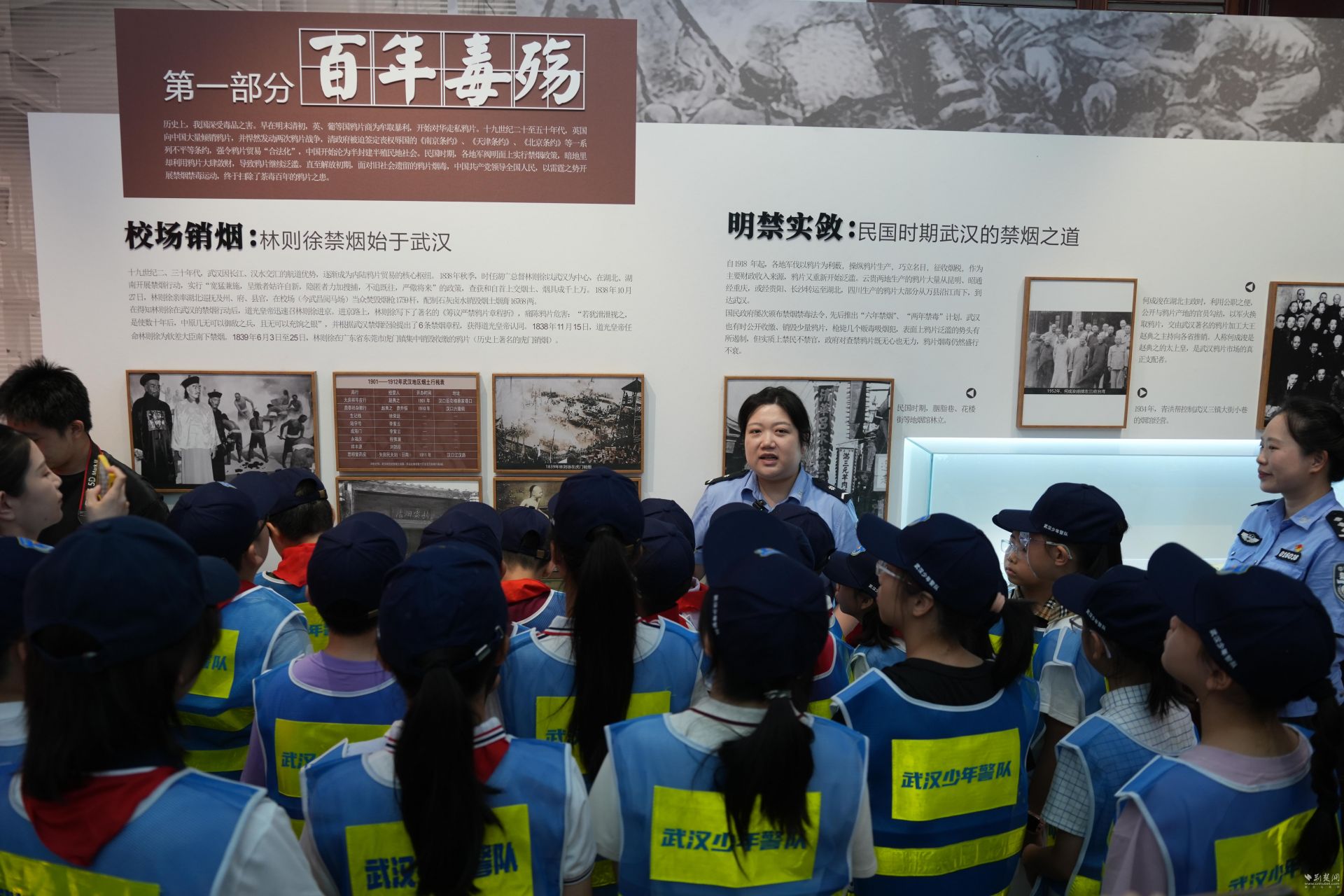 荆楚网(湖北日报网)讯(记者 白云 实习生 潘妍 通讯员 胡子昂 卞如薇)8月15日上午,武汉警察博物馆内气氛热烈,23名武汉少年警队队员在专业讲解员的带领下,深度探访了全新推出的“英雄之城无毒之路”禁毒主题展览,开启了一场穿越百年的禁毒历史探寻之旅。