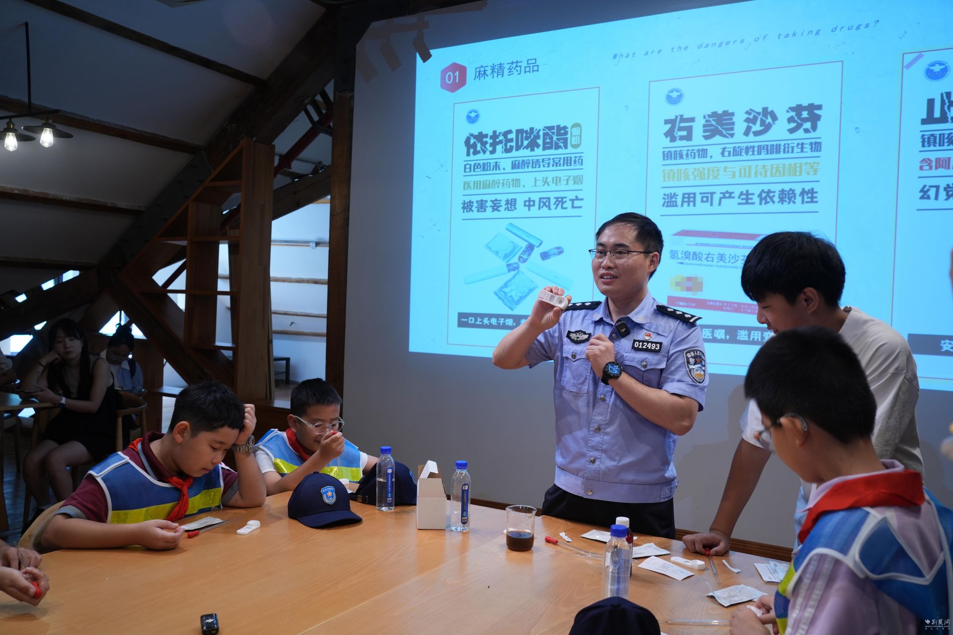 武汉市公安局禁毒支队的博士民警涂许煌带来精彩的禁毒实验课堂。通讯员供图