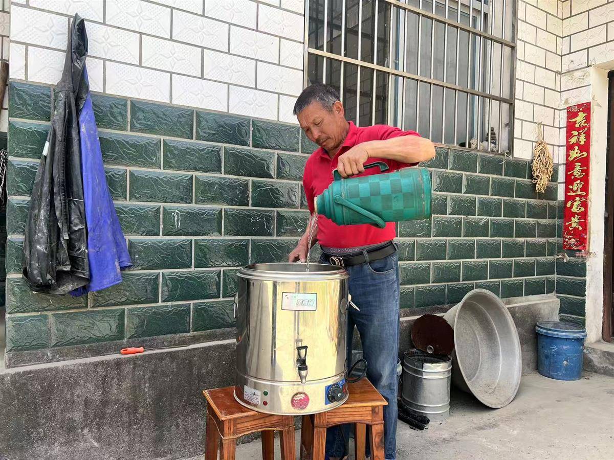 从此,每天早上把保温桶、热水壶等装满水后,他才安心忙碌农活,回家后会先看看茶水够不够,及时续添。