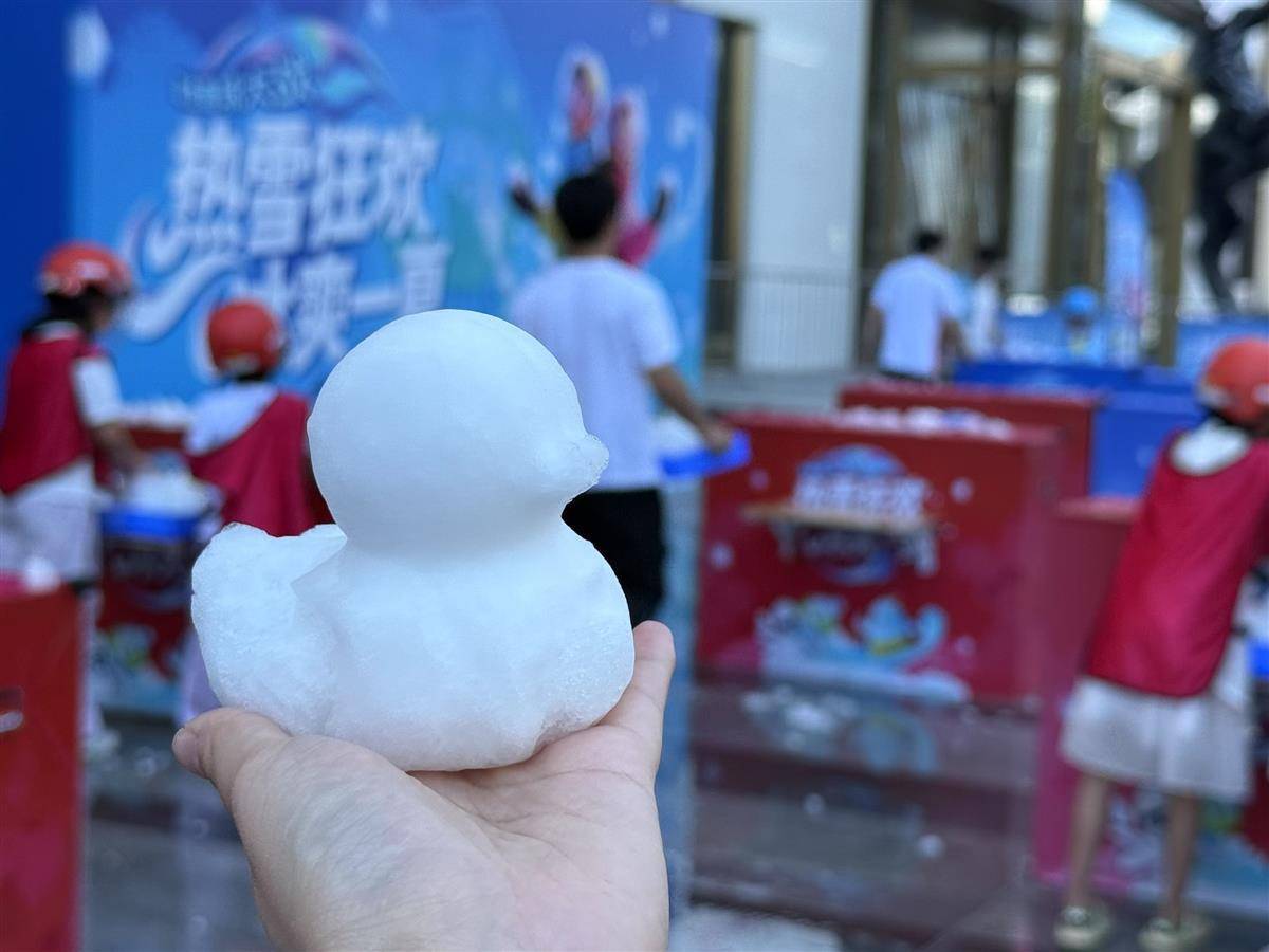 现场,参赛小选手穿戴好防寒护具,从40℃的室外踏入零下6℃的“战场”,孩子们手持特制的小鸭雪球展开6v6对抗赛,被雪球击中后会兴奋地高呼“再来一局”,家长们则举着手机记录这场“夏日奇遇”。“没想到在武汉最热的时候能打雪仗!孩子从上周就开始期待,说这是‘最酷的夏天’。”一位在场外观摩的家长擦着汗笑道。