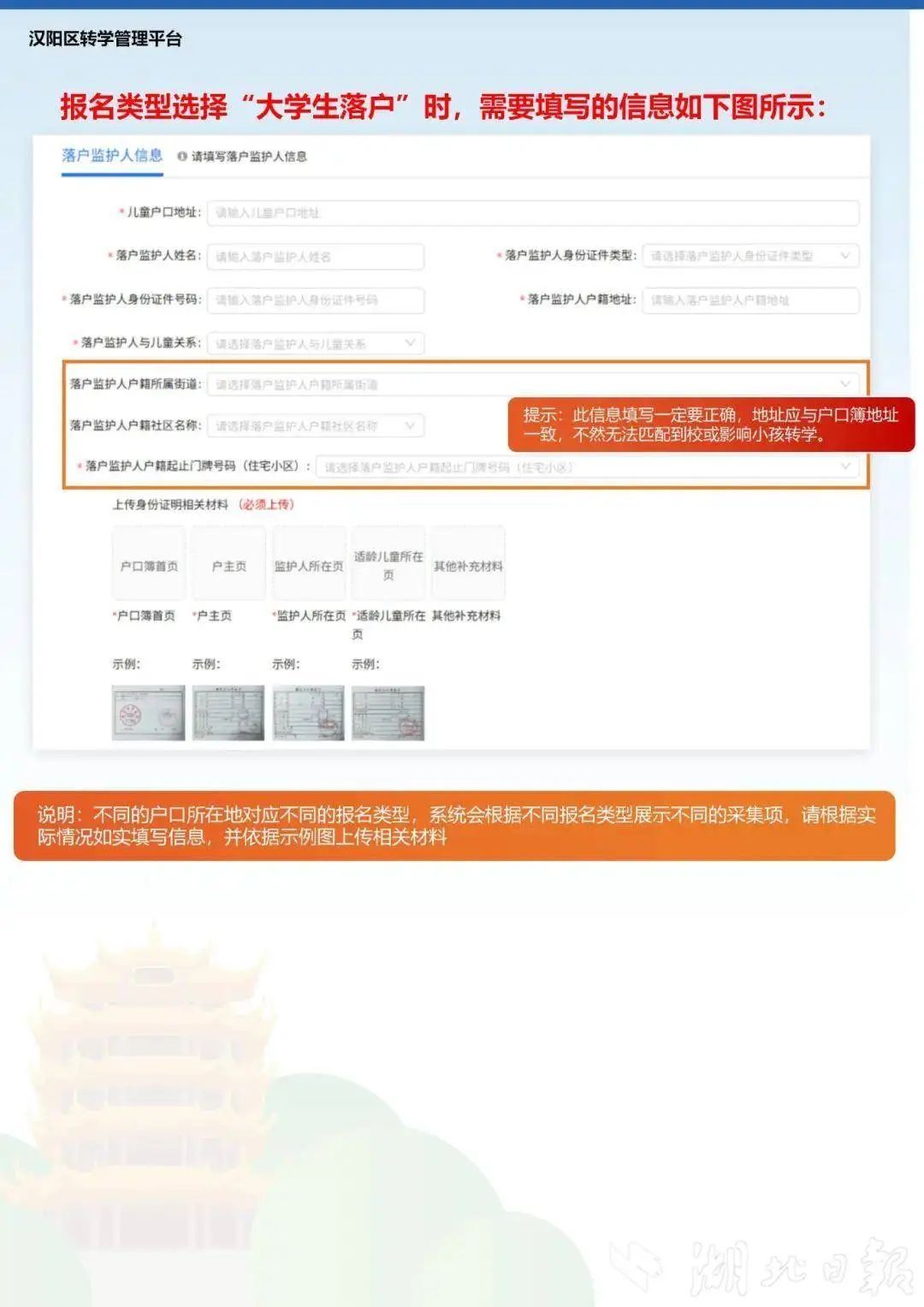依据通知,转学申请登记范围包括户籍在汉阳区的适龄儿童,以及非武汉市户籍的适龄儿童,其监护人持有地址为汉阳区有效期内的武汉市居住证或大学生落户汉阳区的。