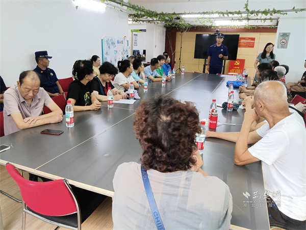 随后,曹警官结合社区楼栋结构特点,详细讲解了不同场景下的逃生方法:“如果火势不大,要及时用湿毛巾捂住口鼻低姿撤离;若浓烟阻断通道,切勿盲目开门,应在窗口挥舞鲜艳衣物呼救……”通俗易懂的讲解让居民们频频点头,不少人还拿出手机记录要点。互动环节中,居民们踊跃提问,“高层住宅如何防火”“灭火器有效期多久”等疑问得到曹警官专业耐心的解答。