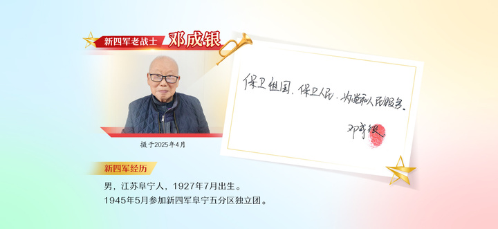 80年后,前行路上,如何从新四军的红色基因中汲取强大力量?新华日报·交汇点新闻派出多路青年记者,组团寻访80位百岁新四军老战士,重磅推出《归来仍是少年》系列融媒报道。每期由8位老战士联袂讲述,在一个个动人故事里记录历史,在一句句深情寄语里共绘未来,弘扬“初心不改,归来仍是少年”的主题精神,激励我们不断攻坚克难,书写中国式现代化建设风华正茂的新诗篇。