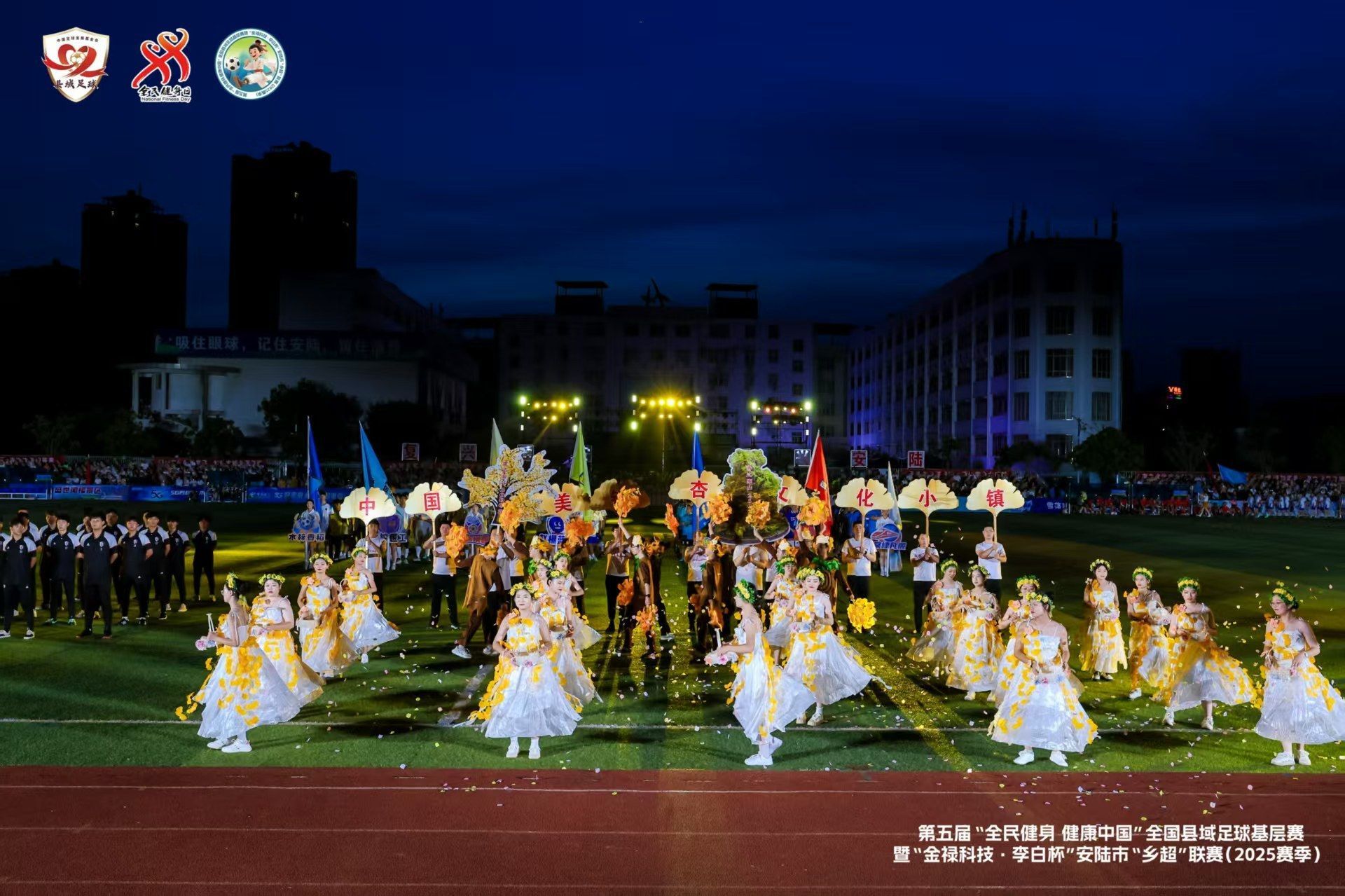开幕式上,大型暖场节目《足球之乡向未来》《奋进新安陆》汇聚数千名表演者,气势恢宏。