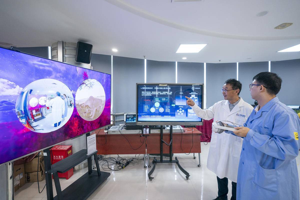 在中信科移动实验室,记者佩戴全息眼镜后,眼前同时呈现两个球形画面:左侧是实验室实景,右侧是非洲动物大迁徙。向左转头,沉浸式进入实验室办公场景;向右转头,即可身临其境地欣赏非洲草原上的迁徙画面。