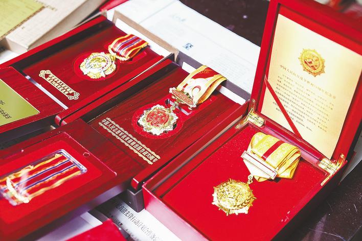 一枚枚勋章,在阳光下泛着温润的光泽。何家祯摩挲着它们说:“这是父亲烽火人生的见证,也是父亲留给后人的宝贵精神财富。”