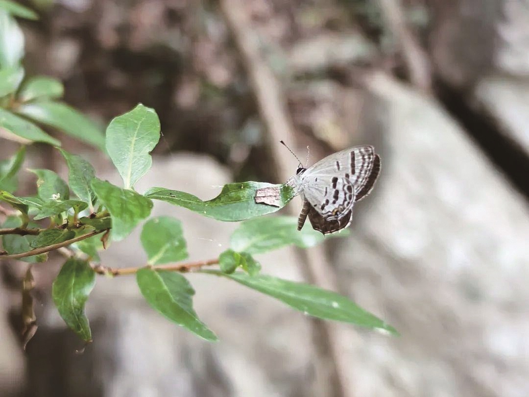 当时,他与朋友前往当地探寻鸟类和其它生物。他们顺着一条山沟往上走,沿途不断见到各种蝴蝶。爬上一块大石头后,他突然发现一只灰蝶停在一旁的灌木上,于是用手机抢拍了几张图片。经多位蝴蝶专家鉴定,“疯羊”发现的这种蝴蝶,是武汉新记录种——波太玄灰蝶。这意味着,波太玄灰蝶是武汉公开记录的第178种蝴蝶。