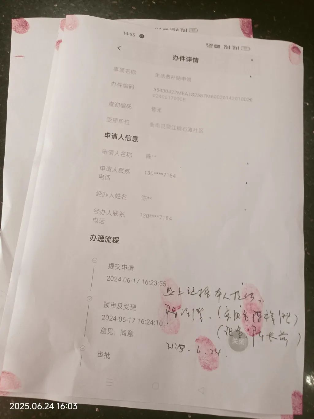 湘易办中,陈长前被冒名办理的生活费补贴。图源:澎湃新闻