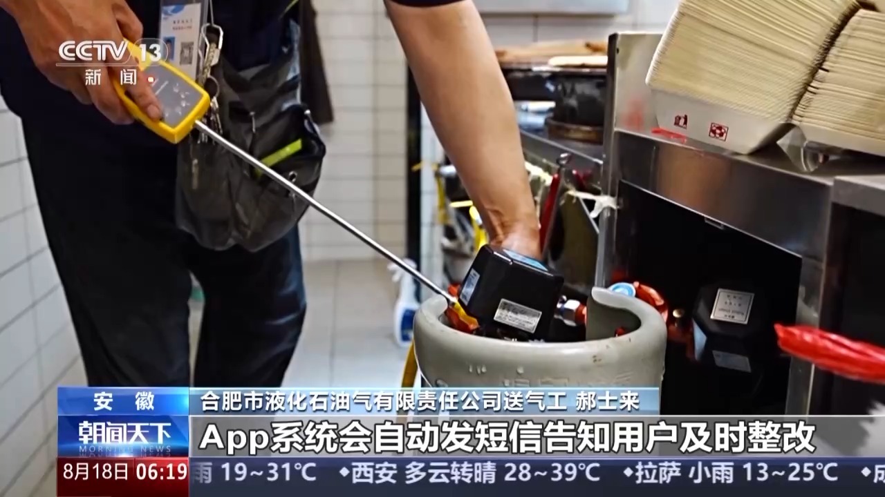 合肥市液化石油气有限责任公司送气工 郝士来:什么时候交付到用户家里,上传的照片合不合格,每户的档案后台能看得清清楚楚。如果某一个环节有不达标的,App系统会自动发短信告知用户及时整改。