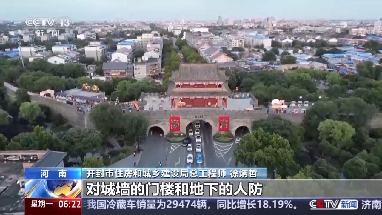 开封市住房和城乡建设局总工程师 徐炳哲:用原工艺、原材料、原作法,采用与原城墙材质一模一样的城墙砖,对缺失的部分进行了修缮,对城墙的门楼和地下的人防,采取最小干预的做法进行了现状保护,通过修缮和保护,给大家呈现了一个完整的明清古城墙。