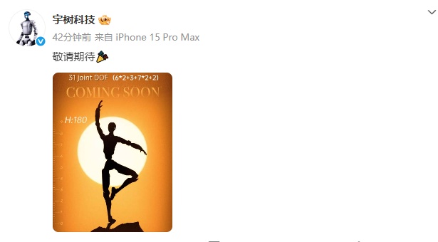 宇树科技8月19日晚间发布海报,预告关于新款人形机器人的关键数据。