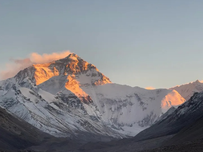 这是2024年11月20日拍摄的珠穆朗玛峰日照金山景观。新华社记者 邱星翔 摄