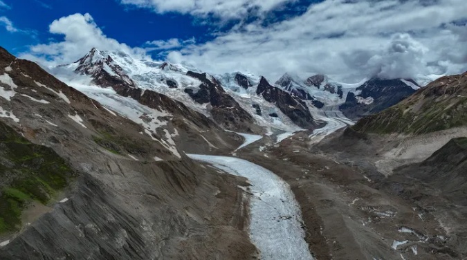 空中俯瞰祥格拉冰川(无人机照片)。新华社记者 晋美多吉 摄