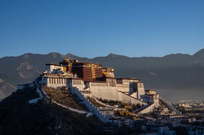 2025年1月1日,拉萨布达拉宫沐浴在晨光之中。新华社记者 旦增尼玛曲珠 摄