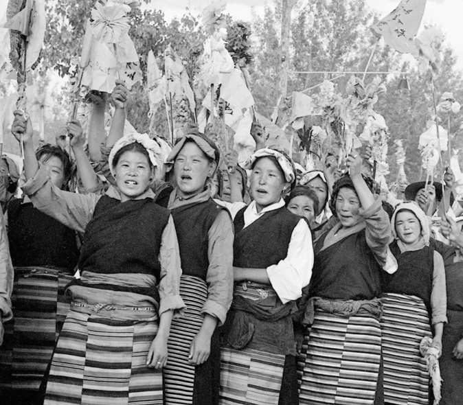 1965年9月9日,拉萨各界各族三万多人举行集会游行,热烈庆祝西藏自治区正式成立。新华社记者 马竞秋 摄