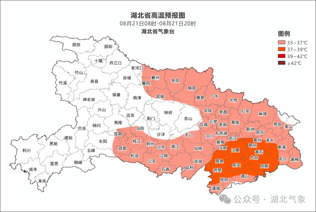 据湖北气象,明天(21日),十堰、恩施、荆门等地将暂时退出“高温群聊”。