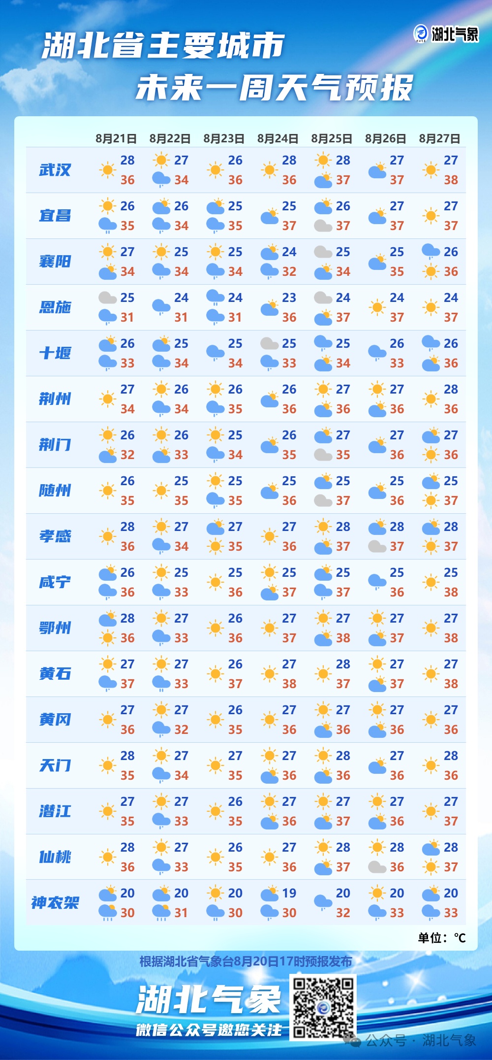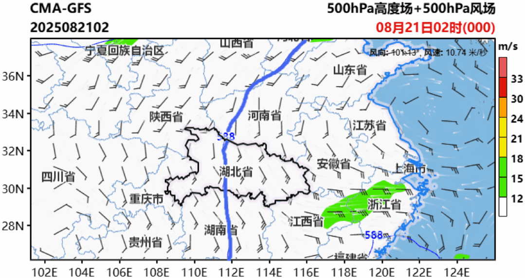 湖北气象部门预计21-23日(周四至周六),副热带高压减弱东退,湖北省多分散性阵雨或雷阵雨,局地大雨或暴雨,对流条件有利于局地短时强降水、雷暴大风等强对流天气的产生。