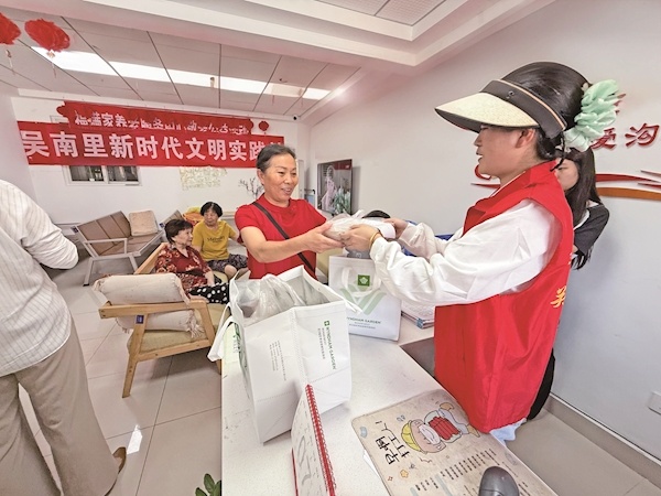 居民到社区取餐点领取爱心餐