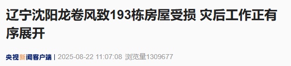 8月21日21时许,辽宁沈阳辽中区养士堡镇遭遇强对流天气(龙卷风)灾害,局部区域受到不同程度影响。灾害发生后,现场成立救援指挥部,全力组织抢险救灾,目前各项工作正有序推进。