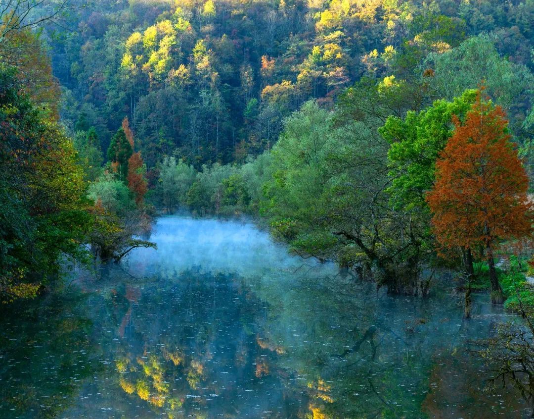 鹤峰董家河层林尽染,人称“小九寨沟” 图源:视觉中国