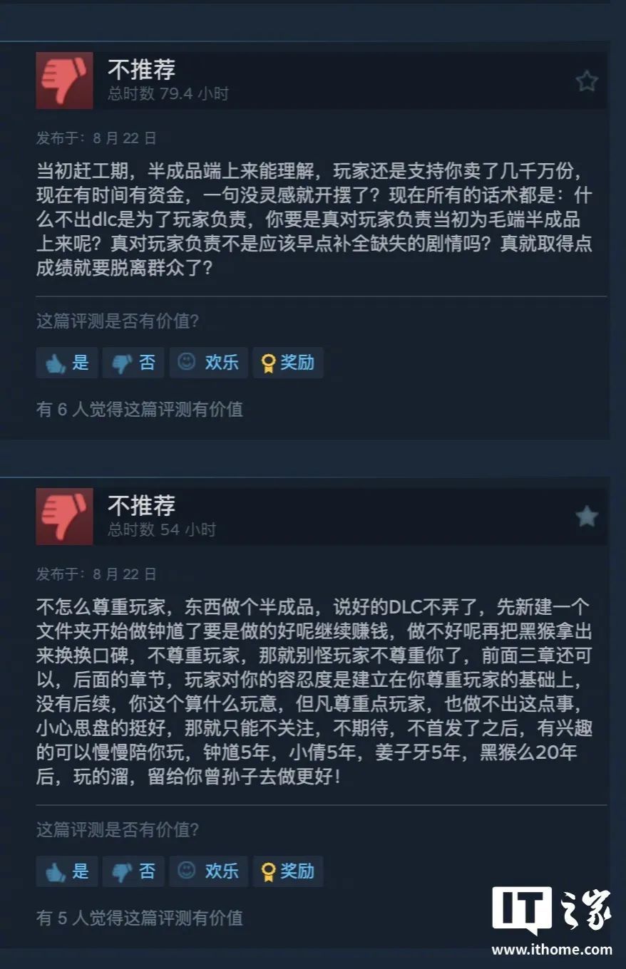《黑神话:悟空》因DLC未能如期推出遭玩家差评轰炸,Steam好评率降至94%。游戏科学团队公布新作《黑神话:钟馗》,但玩家更期待悟空DLC。官方暗示DLC仍会推出,但时间未定。