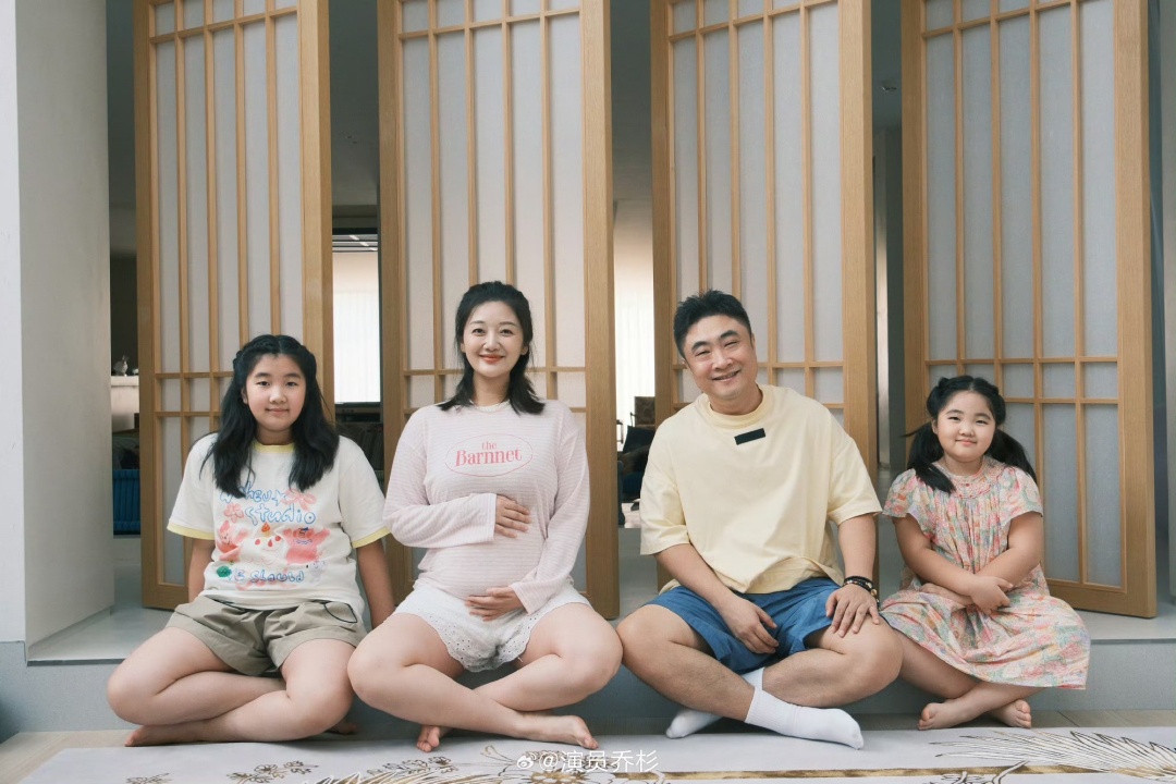 乔杉晒出妻子多张孕肚照以及和两个女儿的全家福。