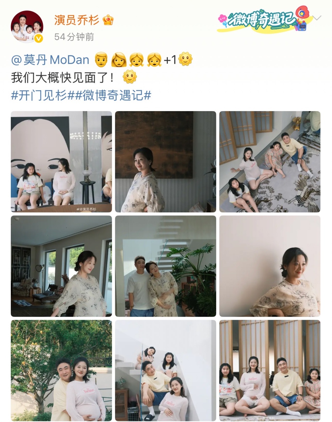 8月23日,乔杉更新社交平台,官宣妻子莫丹怀上三胎,并配文:我们大概快见面了!