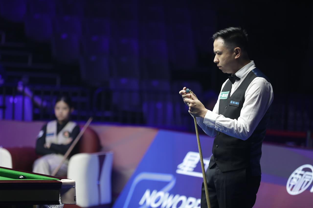24日上午10点,卫冕冠军肖国栋率先登场,在一号比赛桌对战世界排名第108位的泰国女选手明克·努查鲁特。肖国栋状态极佳,首局便以精准长台打开局面。最精彩的是第四局,肖国栋手感爆棚,从第一颗红球起便掌控全场,最终完成单杆147满分,引爆全场,这是他职业生涯第二次打出147分,更是本届武汉公开赛的首杆满分。连胜5局的肖国栋,最终以5比0晋级64强。