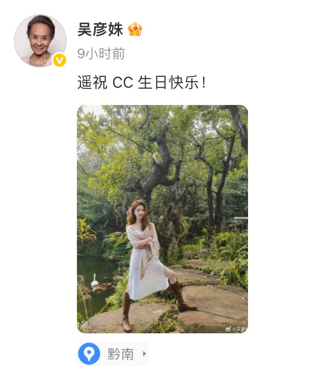 2024年8月25日,吴彦姝也在社交平台发文并@刘亦菲 :祝我的小闺蜜 CC 生日快乐!人生精彩!