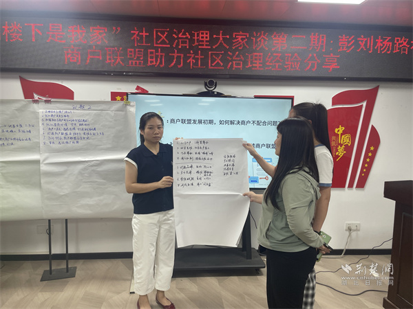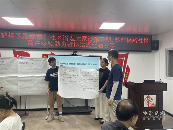荆楚网(湖北日报网)讯(通讯员 郭倩)如何有效撬动商户资源,推动其从社区建设的“旁观者”转变为主动作为的“共建者”?近日,一场以“黄鹤楼下是我家”为主题的社区治理大家谈活动在武昌区黄鹤楼街道彭刘杨路社区热烈开展。来自街道5个社区的20余名社区工作者齐聚一堂,共同探讨商户联盟助力基层治理的破题路径与深化策略。
