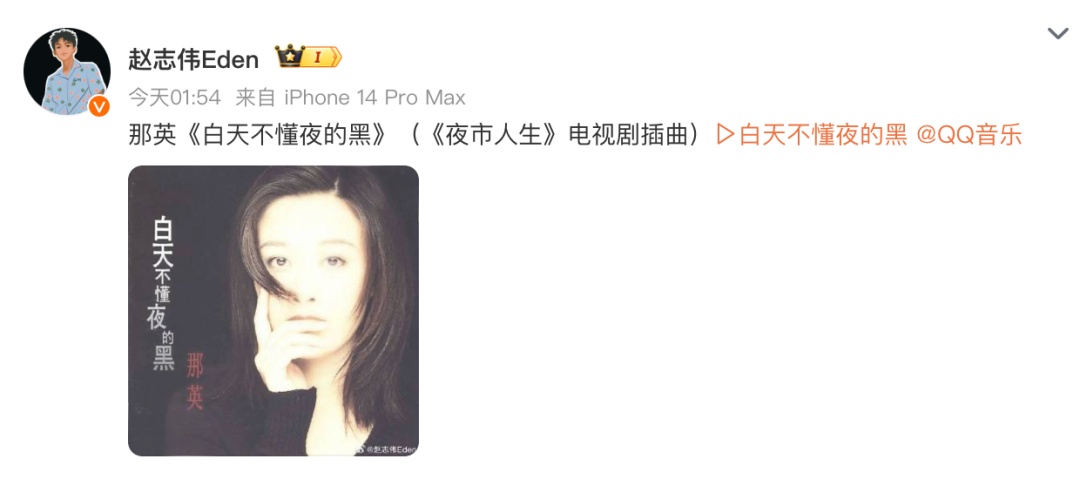 有网友对赵志伟留言“哥你的天终于亮了”,赵志伟回应:“怎么办,白天不懂夜的黑。”8月25日凌晨,赵志伟发布微博,引用那英歌曲《白天不懂夜的黑》,疑似回应该事件。