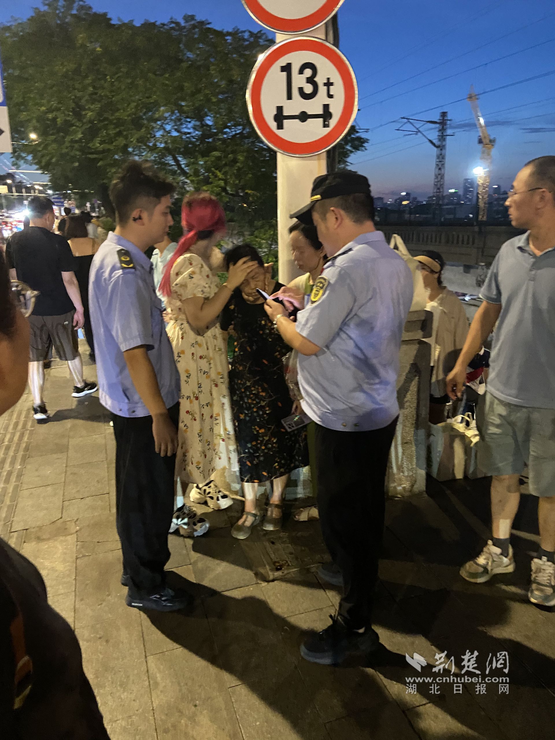 事发当日傍晚,街道综合执法中心队员卢俊正带领协管员秦涛在景区周边开展日常巡逻。行至黄鹤楼西门时,他们突然接到游客紧急求助:一名老年游客出现严重中暑症状,腿脚发软、面色惨白、意识模糊,已无法站立。